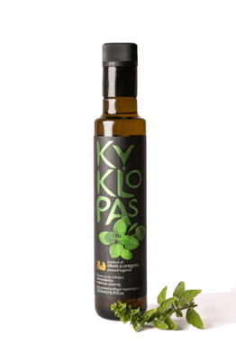 Extra natives Olivenöl von höchster Güte und Geschmack, das zusammen mit erntefrischem Oregano verarbeitet wird.