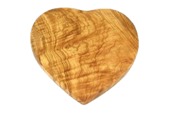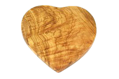 Schönes Holzbrett in Herzform, gefertigt aus Olivenholz.